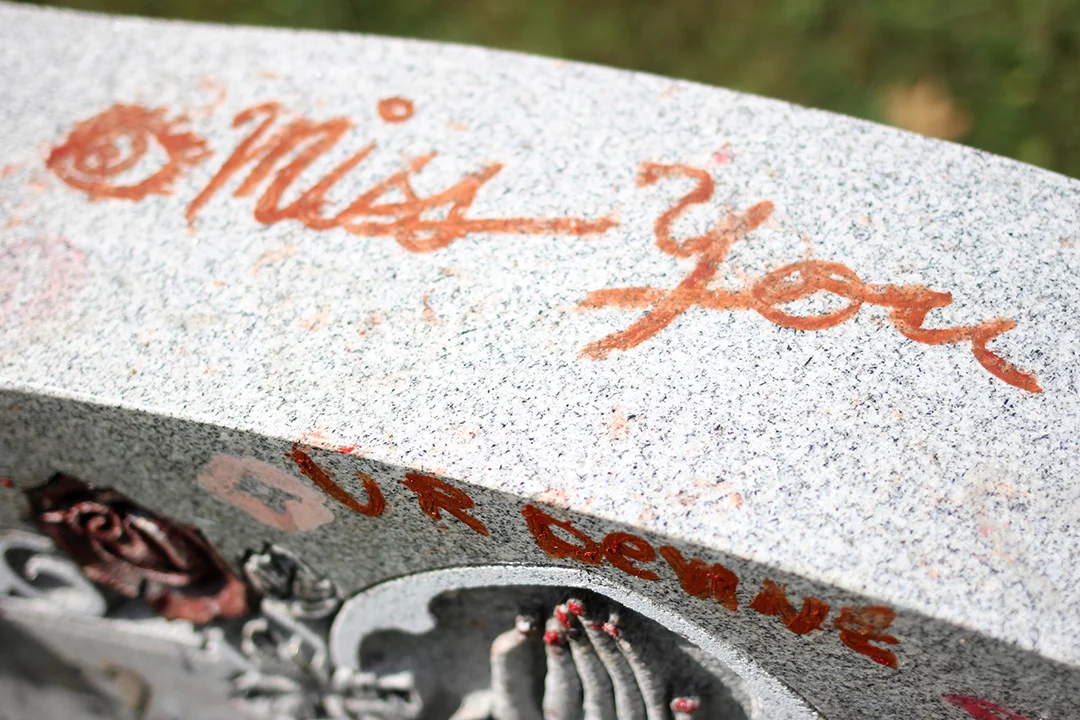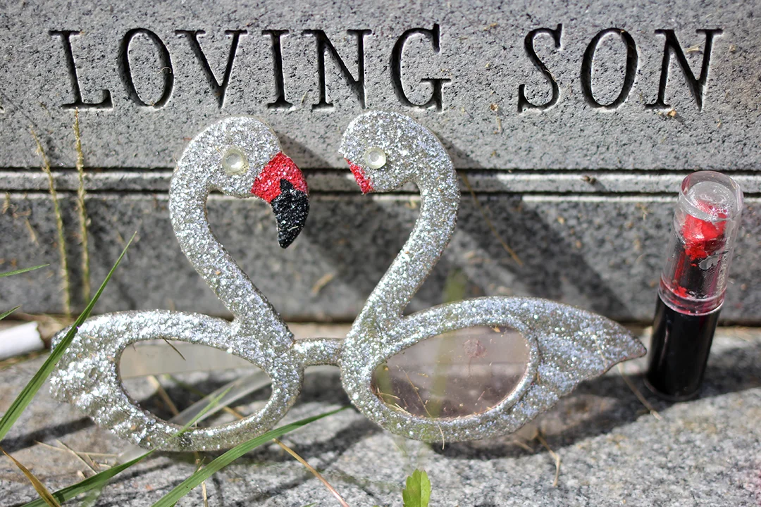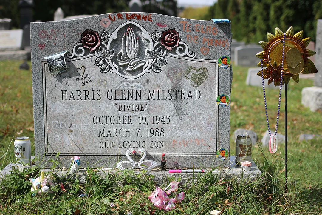 Prospect Hill is a small cemetery, and although we didn't have an exact location for the grave it wasn't hard to find. We read that it would be covered in trinkets, and after just a few minutes we spotted it amongst several other Milsteads. Divine was estranged from his family for years, before reuniting with them before his death, and his headstone bears both of his names and the heartbreaking epitaph "Our Loving Son." I think the lipstick kisses, messages and offerings—both glamorous and trashy—would have pleased Divine. I brought my own tube of red lipstick to leave behind and I only wish I could take credit for those fabulously painted red nails, forever praying to the church of Divine.