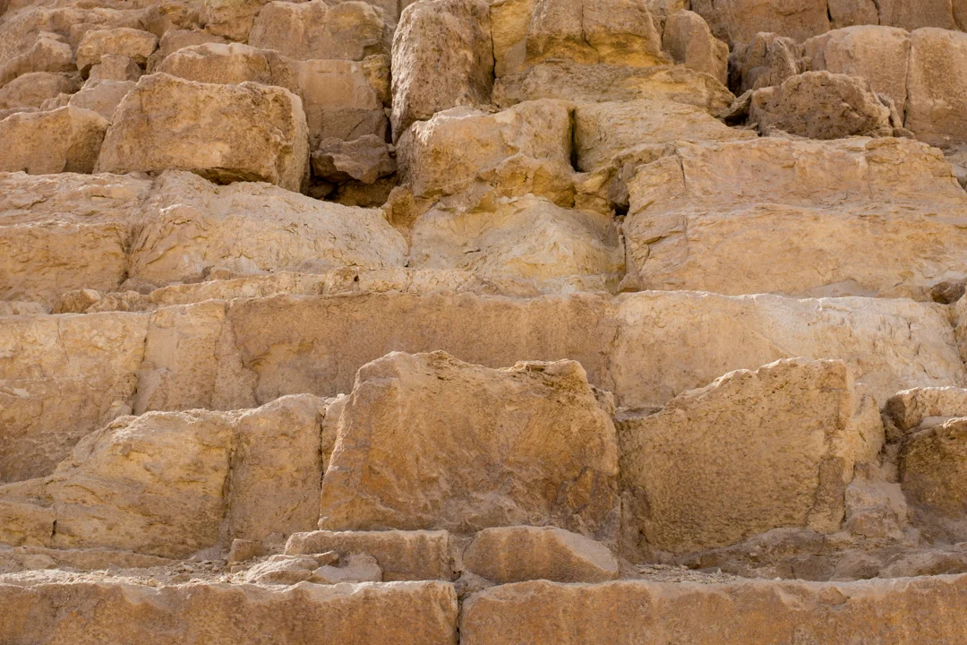 The second-largest pyramid, the Pyramid of Khafre, is my favorite of the three because it still contains portions of its original limestone casing stones. What an incredible sight it must have been to see all three pyramids as they were originally designed, polished and bright white, gleaming in the sun. The Pyramid of Khafre was originally 471 feet tall and now stands at 448 feet, but because it’s built on slightly higher ground, it looks to be about the same size as the Great Pyramid.