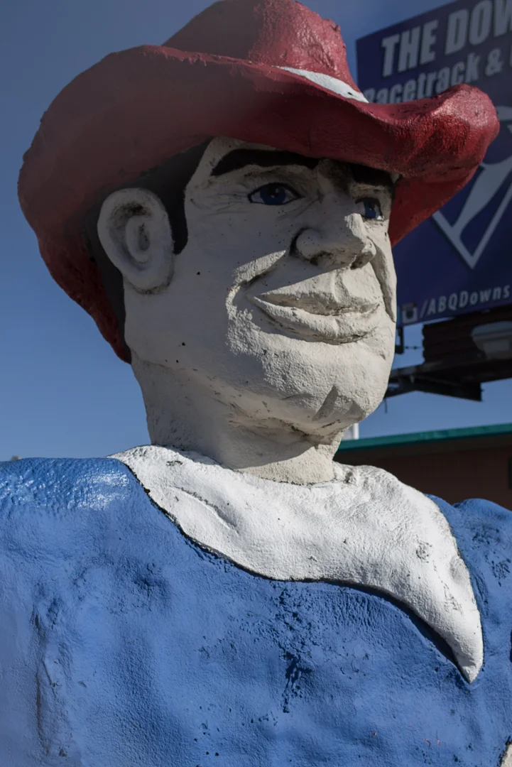 I will go almost anywhere if I'm promised a Muffler Man sighting, but in the absence of official Muffler Men, I'll settle for other big statues—whole, or in pieces. In Albuquerque, New Mexico, we met two big partial men—one missing arms, the other missing his entire lower half.