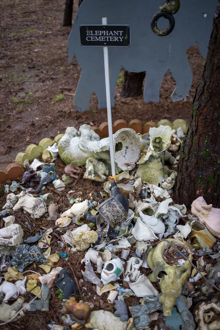 In July of 2010, the store caught fire and was destroyed. More than 2,000 elephants were lost in the fire, but Gotwalt received thousands of donations from across the world and opened a new store in February of 2011. Outside the store is an elephant graveyard, full of the broken bits of figurines that couldn’t be saved.