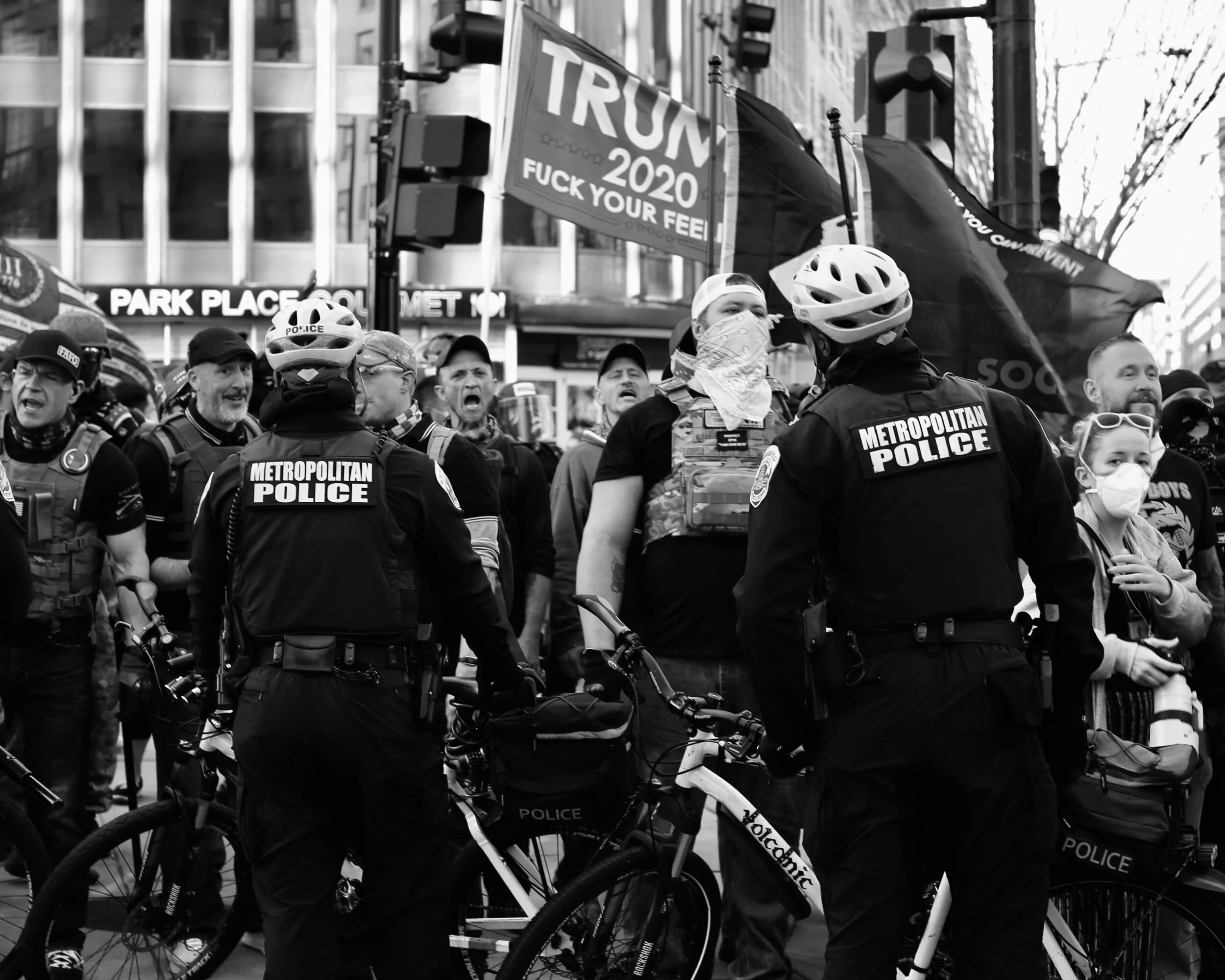 Police block alt-right groups from Black Lives Matter Plaza in December 2020. | Photo: Kristine Jones