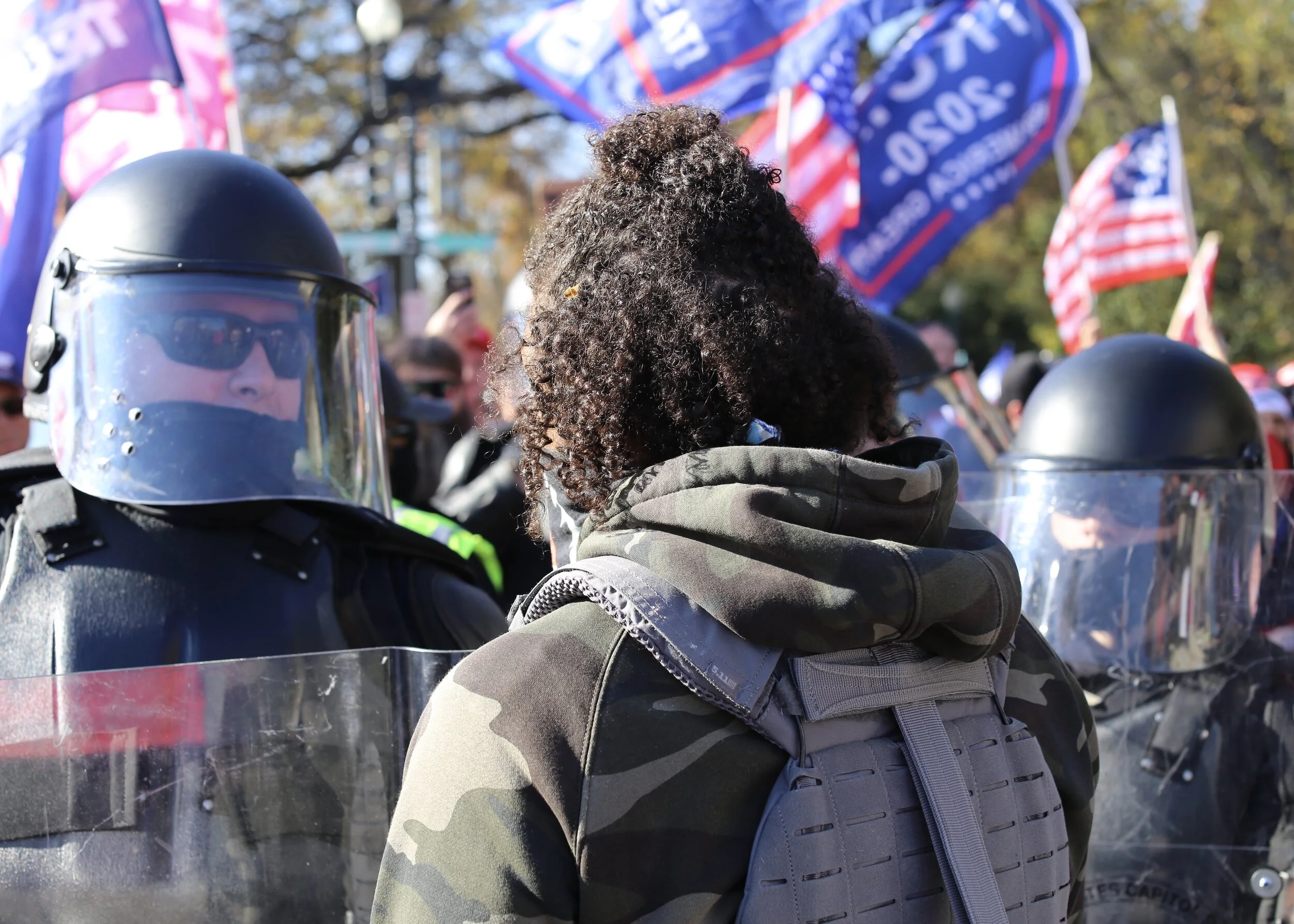 For activists and other targets of alt-right fascist groups like the Proud Boys, the reality on the streets of D.C. had been grim long before the rest of the country was shocked into paying attention on January 6. When thousands of people descended on the District in mid-November, encouraged by Trump’s insistence that they “stop the steal,” anti-fascist groups were quickly outnumbered. The police—decked out in riot gear—mostly kept the opposing sides separate, but it was clear they had much more tolerance (and at times outright camaraderie) for one side over the other.
